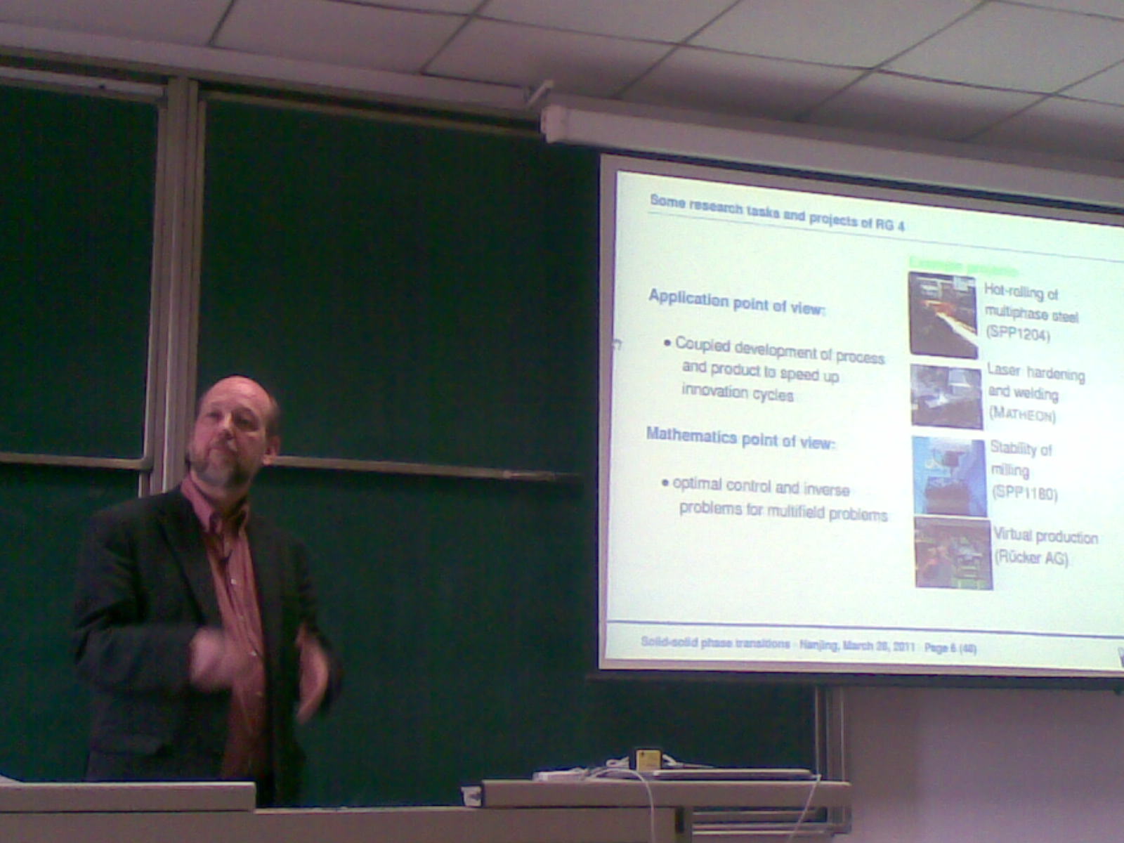 | 德国马克斯・普朗克数学研究所教授 Dietmar Hömberg 于20113.28来我系访问,给全系师生做了题为 Modelling and optimal control of solid-solid phase transitions - from surface hardening of steel to laser thermo-therapy 的学术报告,受到了全系师生的好评。 |