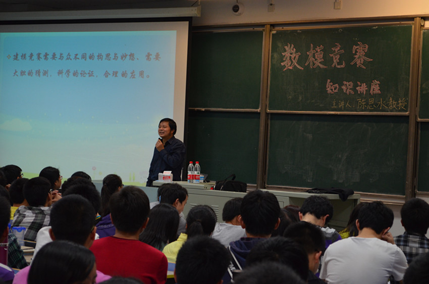 本科生数学建模竞赛是我校基于数学专业特色的学术科技类品牌活动,也是全国大学生数模竞赛的校内选拔赛,至今已经成功举办六届,在全校范围内形成了较大的反响。 为了调动广大学生自主研学的学习兴趣,培养大学生的创新精神和实践能力,促进优秀创新人才脱颖而出,2013年4月17日,由数学系团委主办,数学系科协承办的伊莉论坛 数学建模知识讲座在九龙湖校区教六-201圆满举行。 4月17日晚18点30分,我们邀请了伊莉论坛 数学建模竞赛总教练、江苏工业与应用数学学会建模专业委员会主任委员、全国大学生数学建模竞赛江苏赛区秘书长、数学系副教授、博士陈恩水老师,为全校热爱数模的同学们作了一场精彩的数学建模知识讲座。全场座无虚席,更有近百名同学自己搬了椅子坐在教室过道中聆听陈老师的讲座。陈教授深入浅出地解释了数学建模的性质和含义,形象而生动地说明了参加数学建模竞赛的同学应该具备的主要能力和素质。同时,他强调,数学建模是一门严谨的学科,不仅需要缜密的思维,扎实的语言功底,还需掌握较强的计算机应用方面的能力。陈教授的精彩演讲博得同学们的多次热烈掌声。 讲座结束后,陈教授还与同学和老师进行了互动交流,面对同学们的提问,陈教授做出了详细的解答,使同学们受益匪浅。 本次讲座以即将到来的“伊莉论坛 本科生第七届数学建模竞赛”为契机,是校团委主办的伊莉论坛 科技节系列活动之一。本次讲座成功地鼓励了大学生踊跃参加课外科技活动,开拓知识面,丰富了校园学术氛围。相信,未来一定能更好地培养学生的科技创新、实践能力,在东大这片沃土上培养出更多热爱数模、热爱科技的学子。(袁煜昶) |