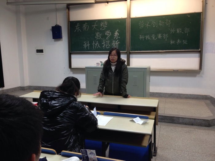 | 数学系科技协会自成立以来,为数学系师生搭建了共同探索的学术平台,在近一年的时间里,协会以学术创新、科技竞赛为依托,多次开展高水平讲座、学术沙龙、数模大赛等活动,不断培养学生科技创新能力,在很多方面取得了前所未有的成绩,管理体系也更加完善,这都离不开院系的支持以及各位社员的努力,为了更好的筹备接下来的工作,协会进行了招新宣讲会及换届选举大会。 11月27日,数学系科协在图书馆504成立了第二届主席团,选举白苗君同学为协会主席,丁丰盛和王朝阳为协会副主席。 12月5日,伊莉论坛 数学系科协招新宣讲会在教四104成功举办。本次宣讲会由协会主席白苗君主持,主要面向数学系2011级和2012级所有学生。宣讲会上首先由主席白苗君介绍科协并向同学们描述科协蓝图,然后由科协第一届科技竞赛部部长、科协现副主席王朝阳,以及第一届秘书处部长文思杰对科技竞赛部,学术创新部,外联部以及秘书处四个部门进行了详细介绍。接着由科协第一届主席成飞上台讲话,最后由科协现副主席丁丰盛进行报名细则的讲解以及招新动员。整场大会历时一个半小时,不仅让同学们详细了解了科协这个组织,而且为科协招进了优秀的部员。 在接下来的三天里,数学系科协在院系领导的带领下,开始了协会第二届成员的选举,经过层层的考核选拔,最后共选出部长4人,部员干事14人,自此数学系第二届科技协会正式成立。 |