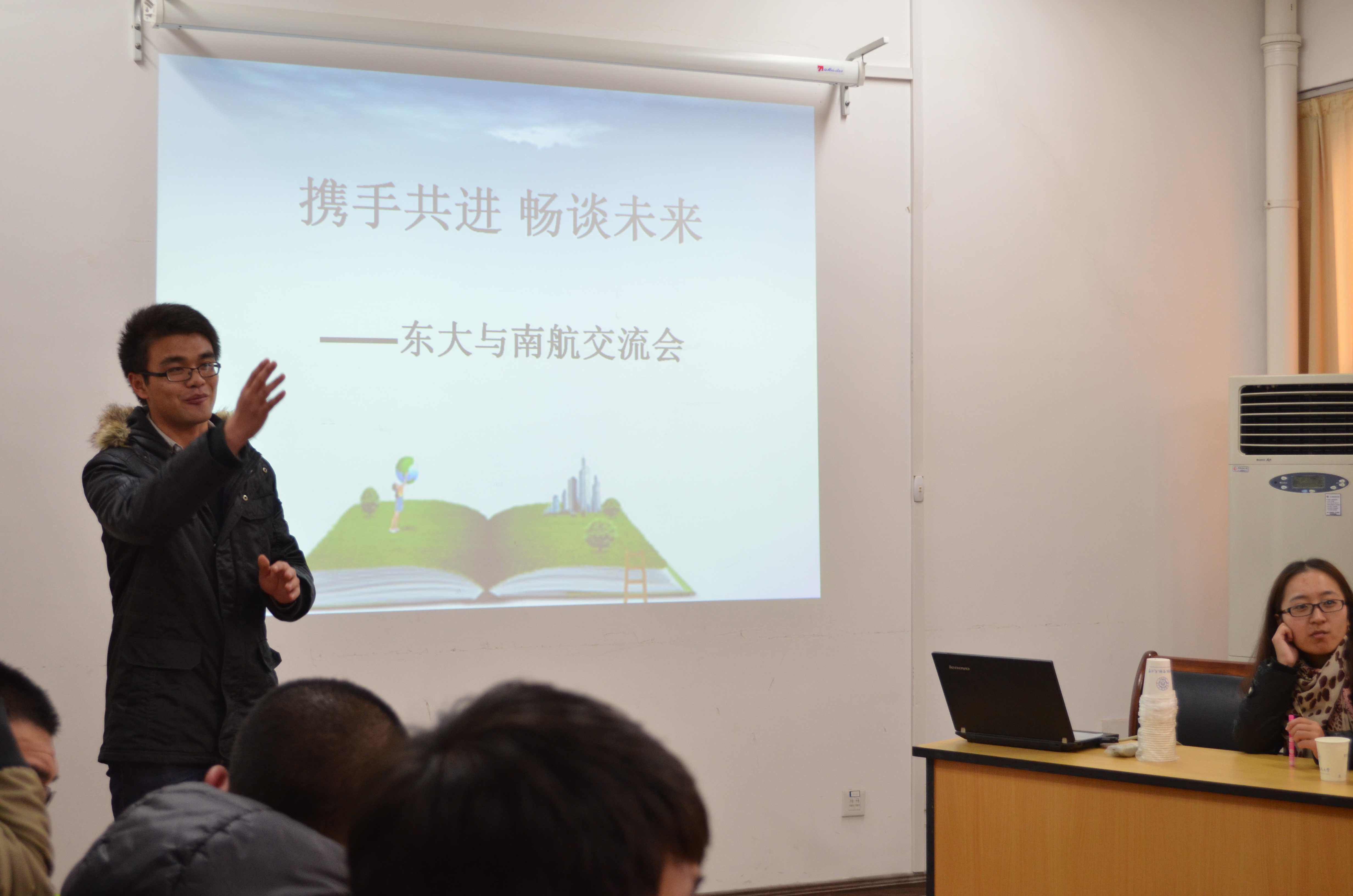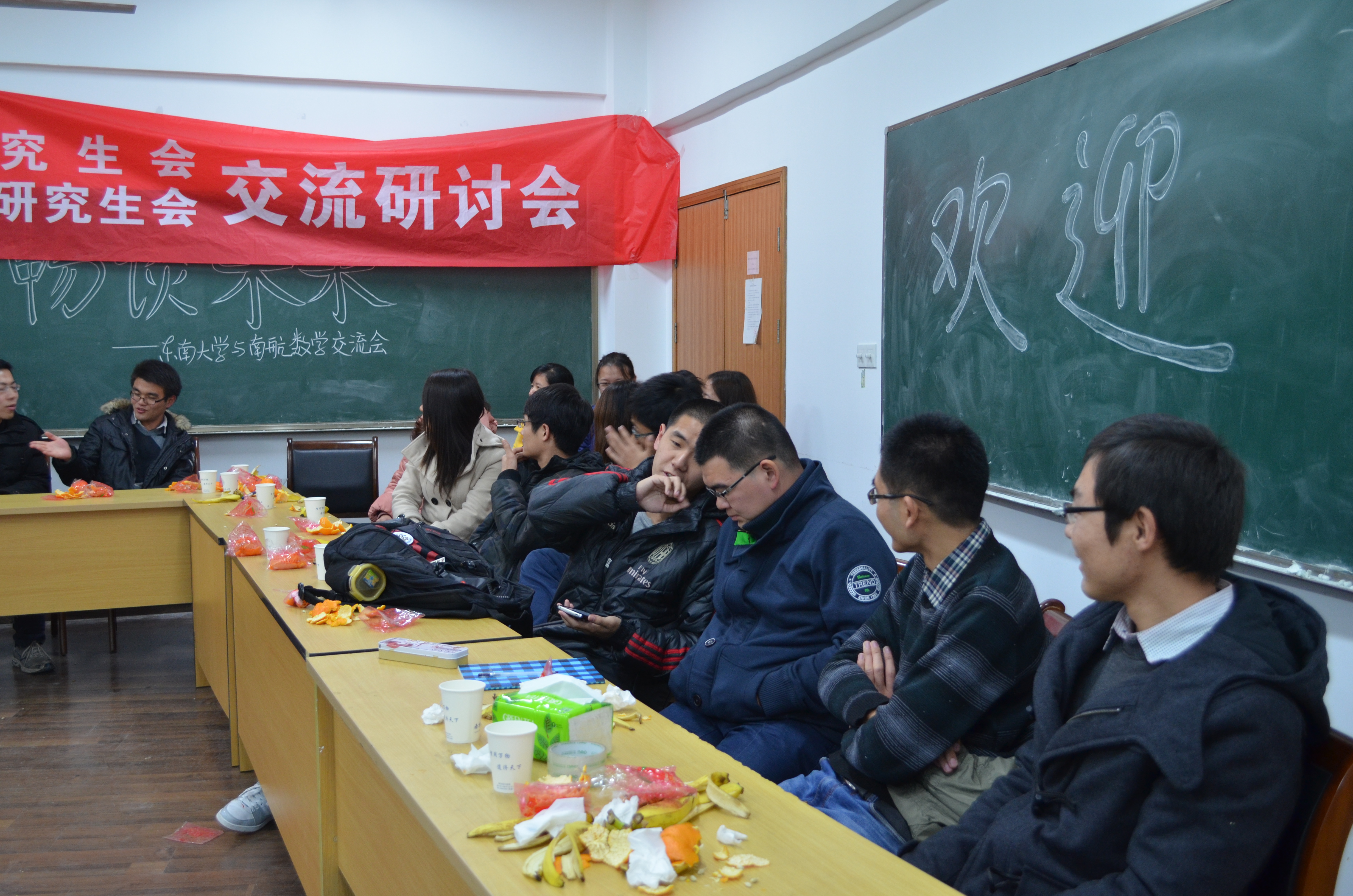 | 2013年12月8日下午15:00在南京航空航天大学理学院会议室,由数学系团委、研究生会主办,南京航空航天大学理学院研究生会协办的“携手共进 畅谈未来”交流研讨会顺利举行。 研讨会活动主要分为以下几个部分:一是学校层面上的交流,听取他们对于“I want you”中国梦的想法,了解他们在这方面所做的工作,另外交流话题将范围缩小至学校,就如何实现“南航梦”(东大梦)进行交流,提出一些建设性意见,取长补短,共建理想校园;二是院系层面上的交流,双方学生就生活、工作、学习等各方面问题进行交流(例如讨论班、科研经验分享),具体了解南航数学系学生的科研状态以及日后的就业情况。 此次活动是数学系研会上学年与南林交流活动的一个延续,加强了两个学校两个院系的交流,进一步开拓了我系研究生的视野。本活动旨在为深入学习宣传贯彻党的彻落实两会精神,深入贯彻落实科学发展观,传播放大立德树人的“正能量”,激励广大学生学习先进、崇尚先进、争当先进。围绕复兴伊莉论坛 ,努力使东大早日实现成为“世界一流大学”的“东大梦”主题,积极对外交流,努力学习先进经验,取长补短,共同进步,从各个方面不断完善我们心目中的东大。同时激发广大同学的爱国荣校情怀,奋发进取、不断努力,在自己的工作和学习上取得更大的进步。 |