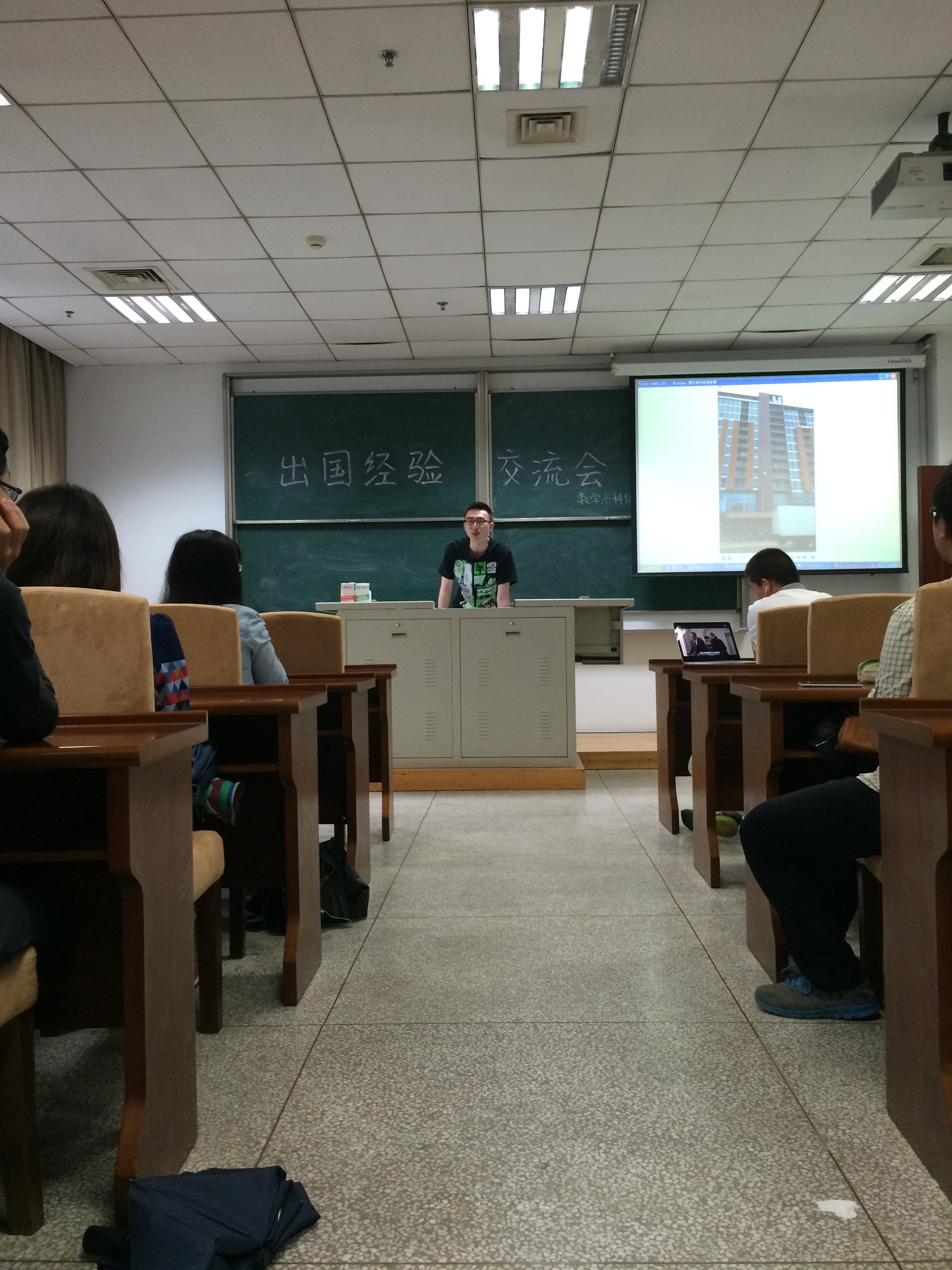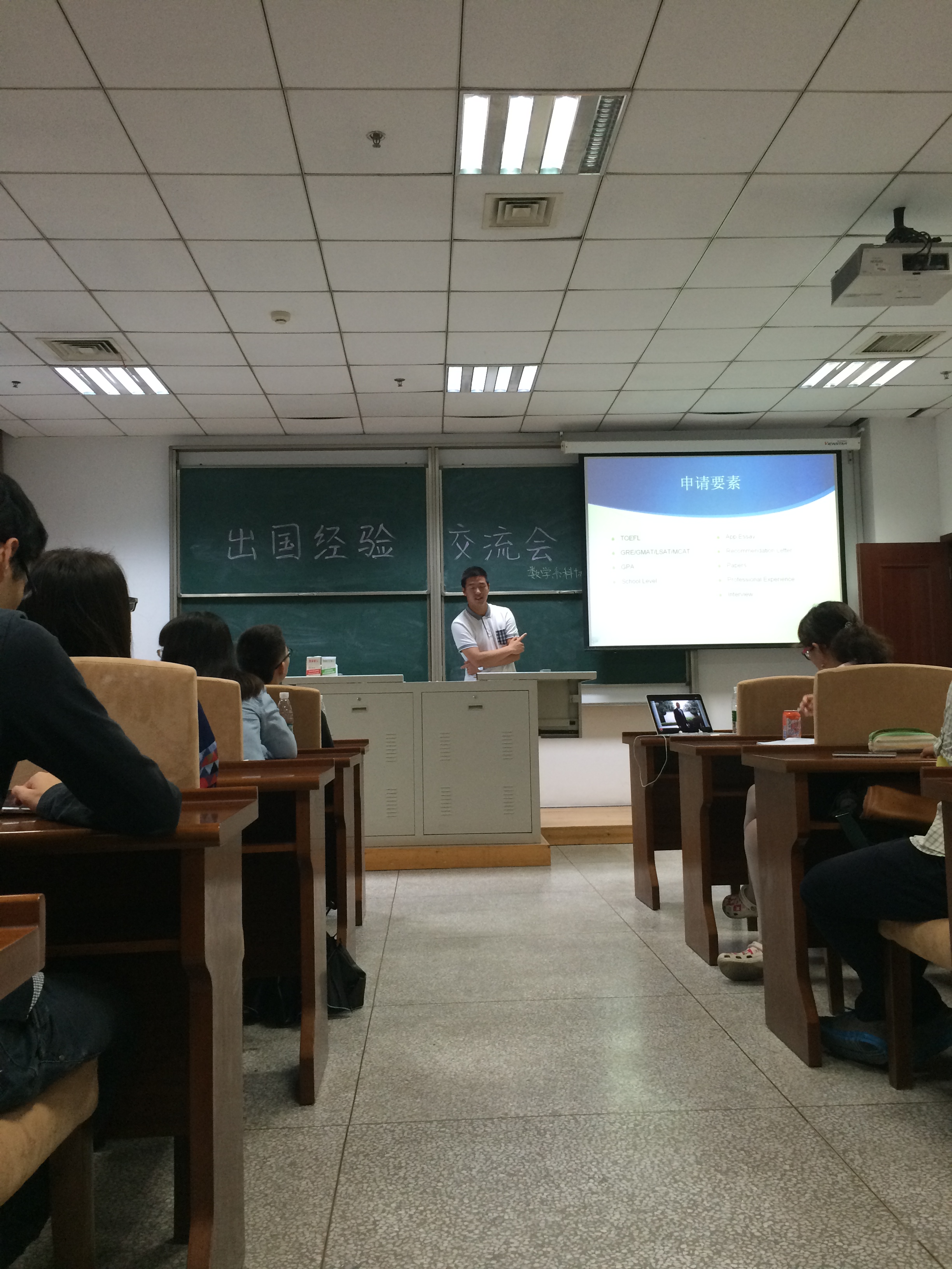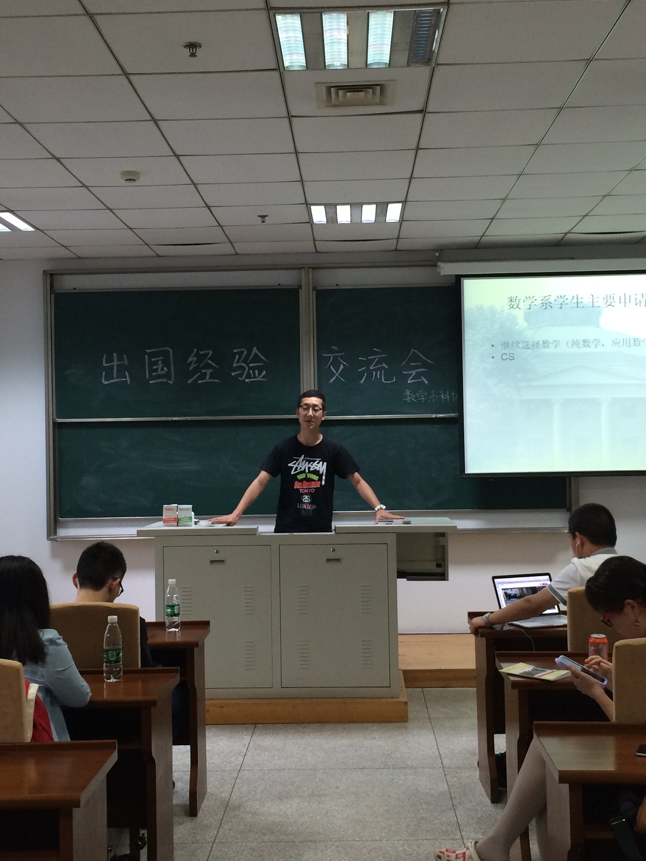 2015年5月29日中午, 由数学系团委主办、数学系科协承办的数学系科技节系列活动之出国经验交流会在数学系第一报告厅成功举办。交流会邀请了数学系2011级大四已确定出国的多位优秀毕业生代表,与我系低年级的同学们分享、交流他们在自己出国申请道路上的各种经验。数学系团委书记袁煜昶老师出席本次交流会。 数学系2011级共76名学生,已明确出国留学的有20人,分别去往耶鲁大学、哥伦比亚大学、波士顿大学、纽约大学等美国高校,此外还有部分前往英国、法国、新加坡、日本等国的不同高校,攻读计算、统计、金融等相关数学的专业。本次交流会在详细介绍20位出国学长的基本情况后,有针对性地特别邀请了6位学长与在座的同学们分享自己的出国经验,讲述他们各自的出国方式、途径、以及如何在出国准备过程中脱颖而出的经验等等。 申请至耶鲁大学的王伟同学为我们介绍了申请中各个要素的注意事项,为我们提供了许多关于美国学校在招收中国学生时非常有价值的信息;申请至哥伦比亚大学应用数学专业的邵天一同学给我们分享了作为数学专业背景的学生在申请出国时主要面临的可选方向以及困境,并为我们推荐了许多值得关注的论坛和信息;申请至纽约大学的丁丰盛同学分享了备考的经验和相关注意事项,提到在申请过程中良好的心态的十分重要;申请至英国伦敦大学学院的�汶迪同学分享了英国高校申请时的要点;申请至新加坡南洋理工大学刘晓玉同学着重为我们介绍了新加坡的生活学习环境。另外通过数学系威斯康辛3+2项目出国的李宸同学也为大家分享了在自己大四一年在美国的学习生活见闻和感受。通过学姐学长们的讲解,我们了解到申请不同地区不同学校对成绩、科研成果、经历的要素的侧重不同,需要我们结合自身实际做出选择,进行准备材料的相关工作。 最后,同学们和学长们针对感兴趣的问题进行一对一的交流,现场氛围热烈而融洽。交流会不仅让同学们对出国留学要做的准备工作有了深入了解,同时,通过与优秀学长的交流,也拓宽了我们的视野,“不积跬步,无以至千里”,不管选择哪个方向,只要脚踏实地的一步一步走下去,一定会离梦想更近。最后衷心祝愿数学系的每一位同学都能不辜负宝贵的大学四年,收获美好的未来! (通讯员:樊雪) |