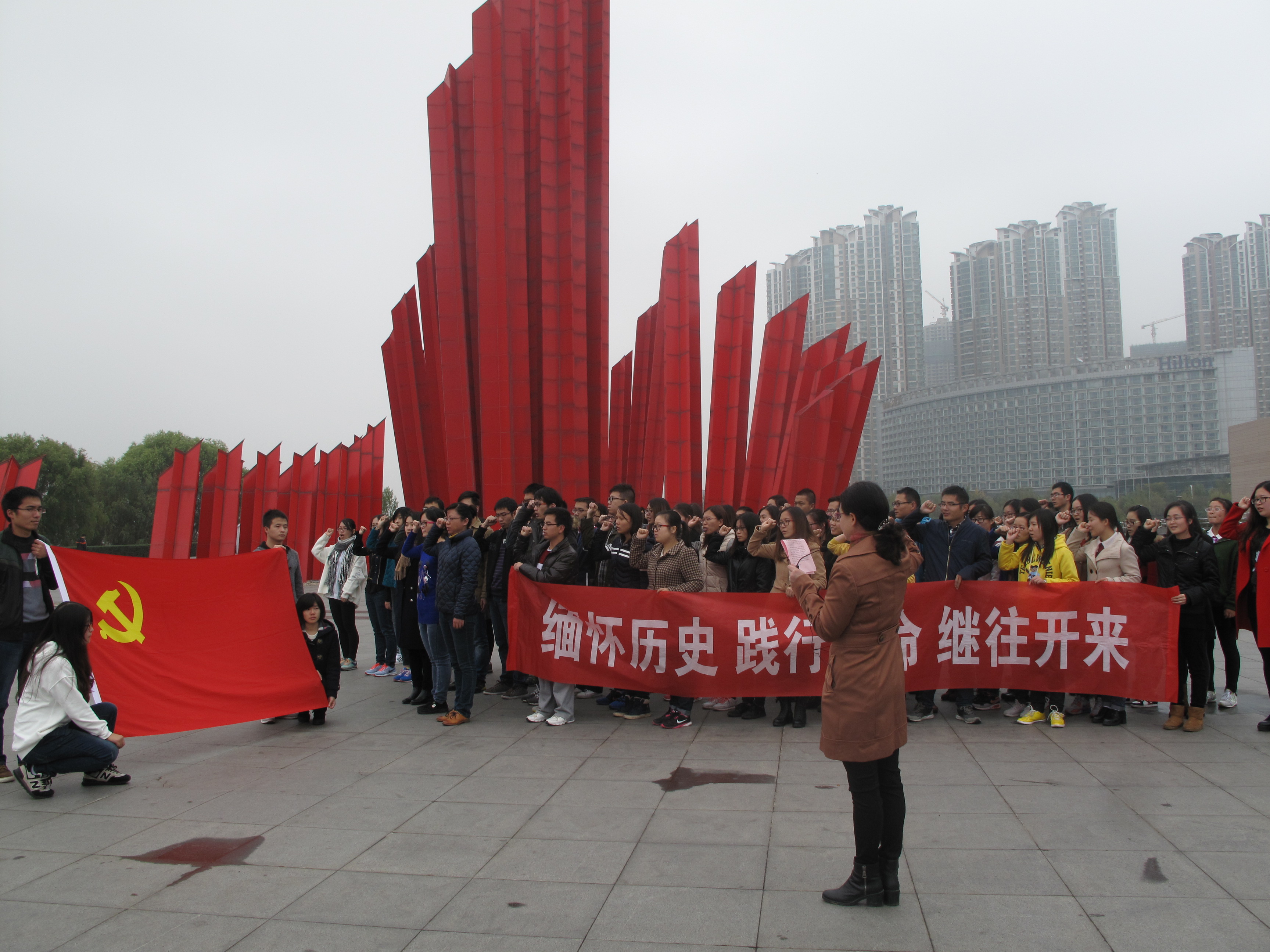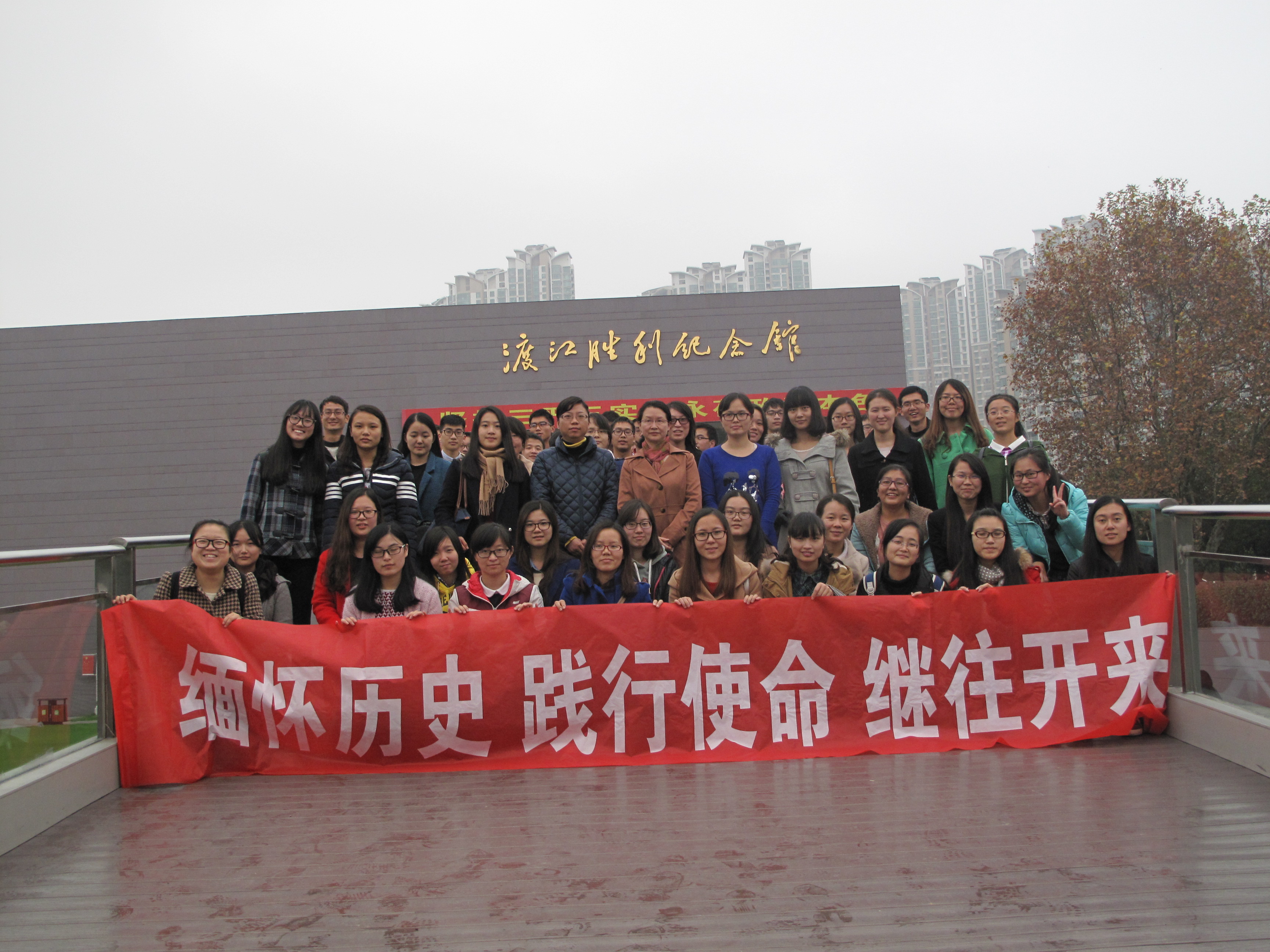 为了贯彻落实从严治党的要求,深入开展“三严三实”专题教育活动,为了加深学生党员对中国共产党历史的认识,进一步激发青年爱国热情,加强党组织凝聚力和学生党员历史使命感,2015年11月22日,数学系党委成功举办“缅怀历史 践行使命 继往开来”大型党日活动。数学系党委书记吴映红老师、副书记曹海燕老师参加本次活动并致辞,吴书记还带领全体学生党员重温入党誓词。 本次活动由数学系党委主办,2015级硕士生党支部承办。活动主要分为三个部分,“缅怀历史”―踏访红色印迹,“践行使命”―重温入党誓词,“继往开来”―开启寻宝之旅。其中,第一、第二两部分活动在南京渡江胜利纪念馆成功开展,第三部分活动在南京绿博园激烈展开。数学系本科生2个支部、硕士生3个支部和博士生1个支部将近80名党员一同参加党日活动。 11月22日下午1点,所有党员从学校乘车出发,抵达活动的第一站南京渡江胜利纪念馆。全体党员分成两组,先后参观了渡江胜利纪念馆。在讲解员细致的讲解下,大家感受了渡江战役中人民解放军冲破敌阵的宏伟场景,回忆起“钟山风雨起苍黄,百万雄师过大江”的壮丽场面,体会着革命先烈对革命事业必胜的壮志豪情。缅怀历史,鞭策自己不断进取。 在结束纪念馆的参观后,大家整队来到了纪念馆旁的“千帆竞渡”广场。数学系党委书记吴映红老师做了重要讲话,她指出:作为学生党员,要不忘历史,践行好自己的使命,做好本职工作,履行自己的职责,永远保持共产党的先进性。加强党性修养,坚定理想信念,提升道德境界,追求高尚情操。随后,吴书记带领大家一起重温了入党誓词。 在结束了前两部分的活动后,下午2:30左右,所有人乘车前往南京绿博园,展开了激烈的“继往开来之开启寻宝之旅”。活动以比赛形式展开,将所有党员以支部为单位分成了4个小组,用自己的智慧和团结的力量共同协作完成标志性建筑的定点找寻、合影以及面向于路人的问卷调查等任务。在激烈的角逐过后,本科生党支部勇夺一等奖,研二党支部获得二等奖,研三和博士生党支部以及研一党支部分获三等奖。数学系党委副书记曹海燕老师为活动作总结致辞,并和吴映红书记一起为获奖支部的代表颁发了证书和奖品。 活动在全体高声齐唱伊莉论坛 校歌中结束,每个人的脸上都洋溢着灿烂而坚定的笑容。缅怀历史,践行使命,继往开来,愿每一名党员心中永存对党的誓言,愿在风雨中走过90多年历史的中国共产党更加兴旺、坚强、壮大、辉煌! |