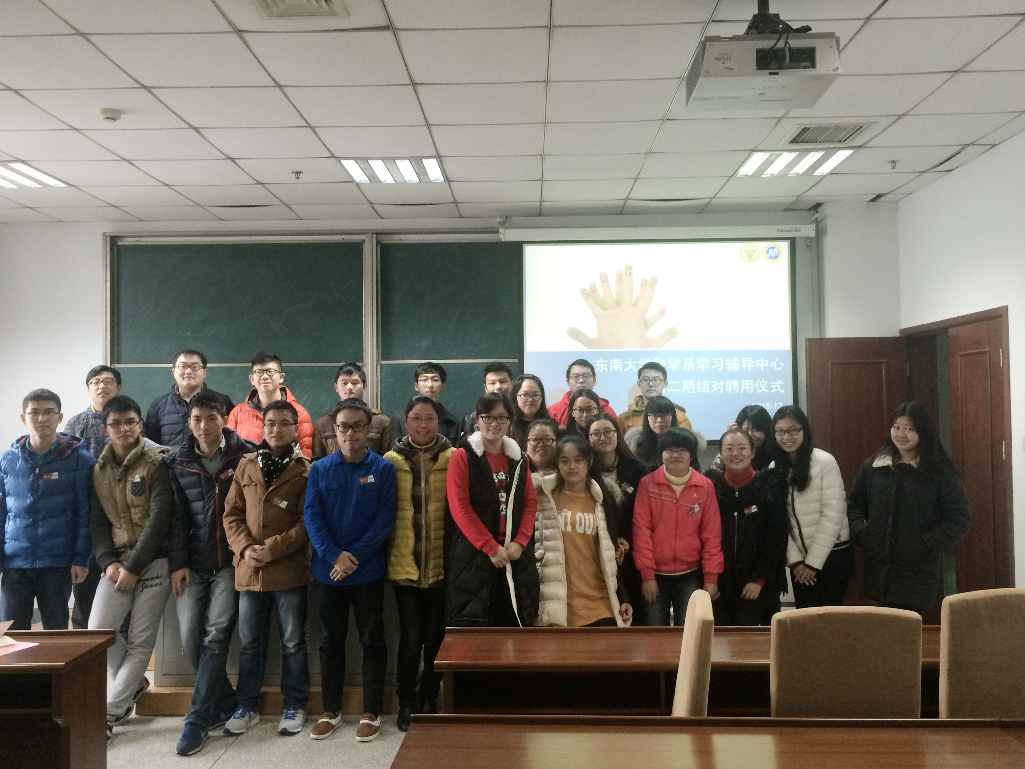 为了更好地促进我系2013级的学风建设,更好地架起学霸与学弱之间学习与情感的桥梁,数学系学习辅导中心第二期结对仪式于2015年12月24日圆满举行。数学系党委副书记曹海燕老师出席结对仪式,系团委书记、本科生第一党支部书记袁煜昶老师为13位辅导讲师颁发聘书和工作牌。