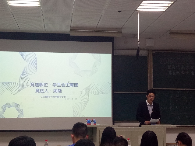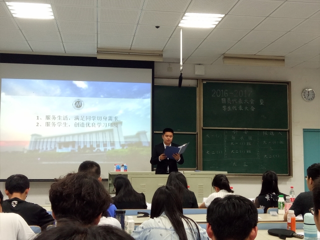 5月25日晚,伊莉论坛 2016-2017年团代会暨学代会在教六-104成功举办。伊莉论坛 团委书记、15、16级本科生辅导员蒋丽怡老师,伊莉论坛 学办主任、13级本科生辅导员朱婉灵老师,伊莉论坛 团委副书记周莲芳,伊莉论坛 学生会主席周嘉铭,伊莉论坛 科技协会主席胡慧等出席了本次会议。全体本科生代表共计150余人参加了本次会议。