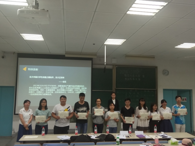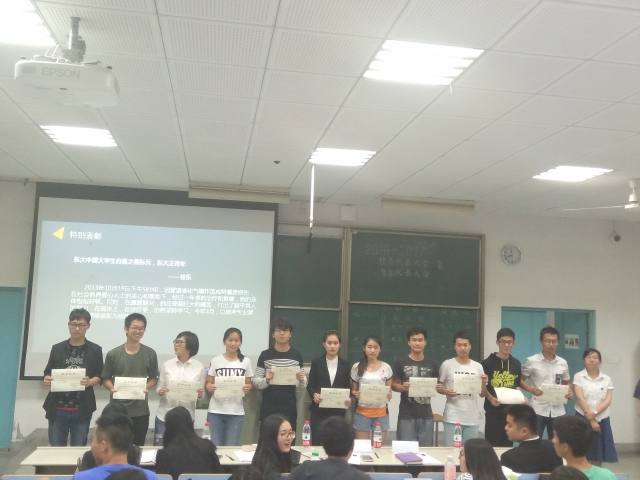 计票时间中,蒋丽怡老师为参与本学期清水亭支教活动的同学颁发了奖状。以此鼓励同学们积极参加支教等志愿服务活动,在活动中帮助他人,锻炼自己。
