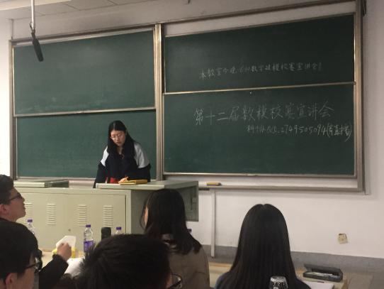 首先,主持人夏可扬同学给大家介绍了什么是数模竞赛。同时指出,参加数模校赛可以开拓我们的眼界,锻炼我们的能力,让我们在今后更有竞争力。