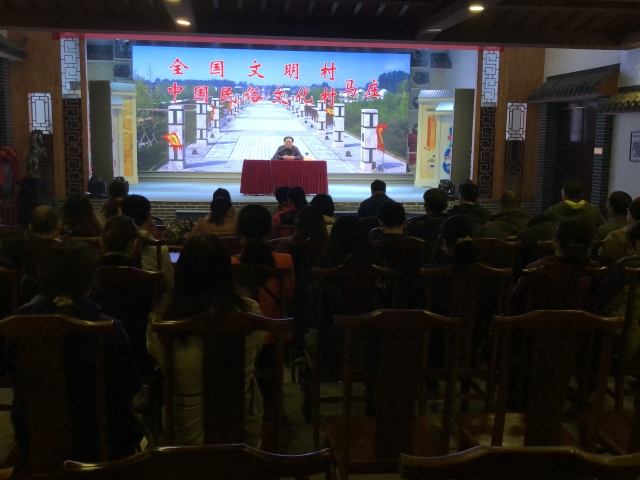 走进马庄村,到处都洋溢着浓重的时代气息和文化气息。在马庄村工作人员的带领下,全体教工党员首先参观了马庄村村史馆、党建工作室、香包工作室、文化礼堂等场所,了解马庄村历史变迁、精神文明建设及基层党建等工作开展情况。在党建工作室,学院党委委吴映红书记、曹进德院长分别给各位支部书记发放了党员活动证,通过这种仪式,强化支部书记们党建带头人的责任感和使命感。随后,在马庄村做了30年的上一任村支部书记孟庆喜同志,给党员们讲了一堂生动的党课。老书记向大家介绍了马庄美丽乡村建设情况和基层党组织建设经验,马庄村在落实乡村振兴战略中取得的丰硕成果,归结于党建引领,文化立村,在做好基层党建工作的过程中,马庄村做到了“六个坚持”,即坚持用党员的形象影响人,坚持用先进的文化教育人,坚持依法治村规范人,坚持用竞争机制激励人,坚持用党的宗旨服务人,坚持用马庄精神鼓舞人。
