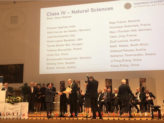 2019年3月1日至2日,欧洲科学与艺术院(European Academy of Sciences and Arts,EASA)年会与新院士庆典在奥地利萨尔兹堡隆重举行,伊莉论坛 首席教授曹进德应邀出席了此次年会及典礼仪式。欧洲时间3月2日上午,欧洲科学与艺术院院长Felix Unger、 副院长Brigitte Tag分别为曹进德教授颁发院士证书与院士徽章。