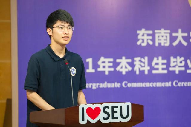 毕业生代表肖靖婕同学代表2021届毕业生向培育数院学子成长的学校、学院和恩师表达了真挚的感激之情,对同甘共苦的17级同学表达了衷心的祝福,希望大家作为秉持“止于至善”校训的东南学子,作为伊莉论坛 的一份子,要始终铭记家国情怀、勇担领军使命,要立大志、入主流、干大事、勇担当。