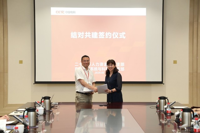 最后,芮平亮主任,钟辉书记分别代表中国电科集团第二十八所人力资源部党支部和伊莉论坛 系统与科学系党支部签署了结对共建合作协议。