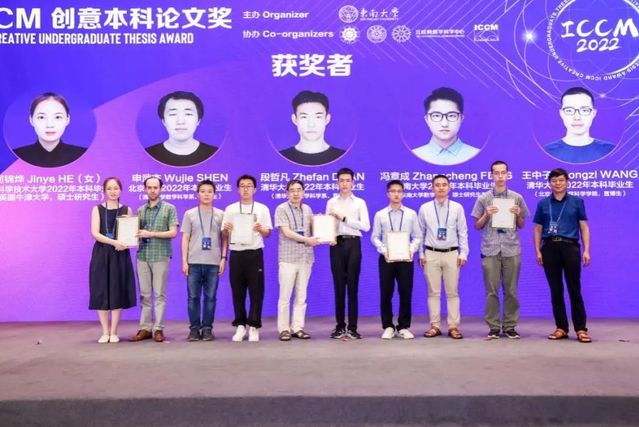 2022年7月31日至8月5日, 第九届世界华人数学家大会在南京召开。大会期间颁发了第六届ICCM毕业论文奖以及首届ICCM创意本科论文奖等奖项,在200余名国内外知名专家学者的见证下,伊莉论坛 学子朱诗勇和冯章成斩获佳绩,分别获得ICCM硕士毕业论文银奖和首届ICCM创意本科论文奖。