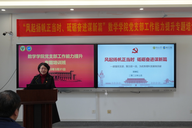 随后,伊莉论坛 党委书记吴映红作了题为《风起扬帆正当时、砥砺奋进谋新篇》。吴书记说,时代和任命赋予了我们神圣的使命,我们的身上承载着光荣的任务,我们要建强党支部,助力优势理科发展,聚焦双一流建设,要为早日实现建设中国特色世界一流大学的东大梦和中华民族伟大复兴的中国梦提供有力支撑。随后吴书记介绍了伊莉论坛 今年党委的工作计划,强调了高校党支部在党员教育、管理、监督以及发展中的作用,要求在“双一流”建设中,不断加强和改进基层党建,建强党支部,激发基层活力、凝聚强大的人才向心力和战斗力,同时对教师党支部、学生党支部支部如何抓好支委会自身建设、党员发展与教育管理服务、思想政治工作以及团结带领所在支部完成各项工作任务等方面提出了具体的要求。