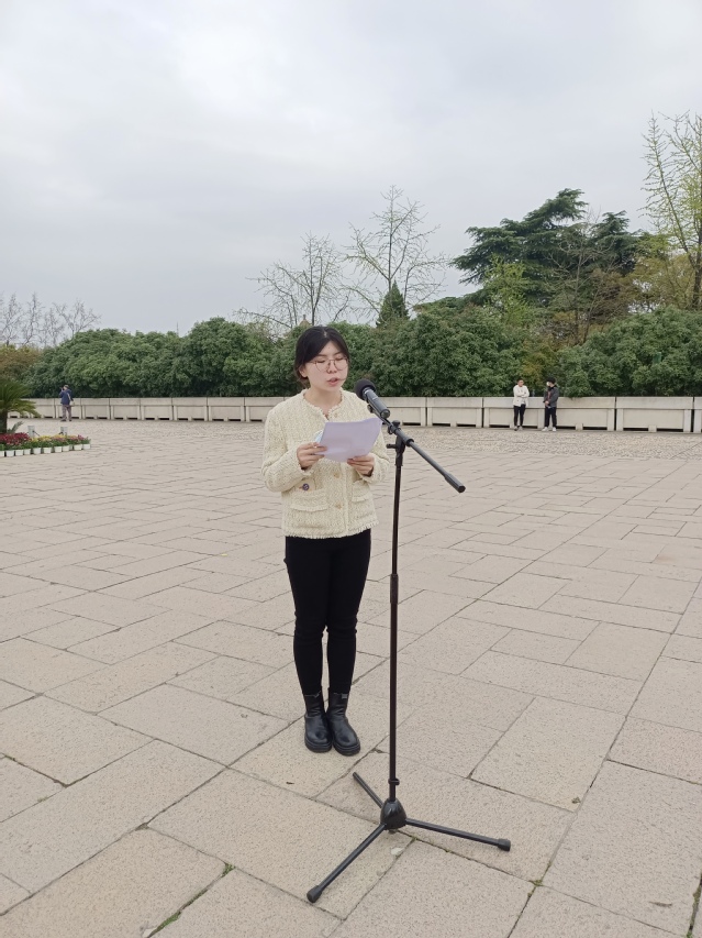 下午,与会全体人员来到南京雨花台烈士陵园开展现场主题教育活动。在庄严肃穆的雨花台烈士纪念馆,大家在讲解员的带领与讲解下,通过光电、影像、图片、实物资料等,深刻感受烈士先烈的丰功伟绩和崇高精神。进一步了解历史、增加党性、不忘初心、砥砺前行。随后,全体人员来到雨花台烈士纪念碑下举行凭吊仪式,仪式由学院党委副书记钟辉主持,全体人员庄严地向烈士敬献花圈并沉痛默哀,学院党委书记吴映红和硕士生第一党支部书记张淑婷同学分别讲话。吴书记指出,通过此次活动,我们要更加深入地了解中国革命和抗日战争的历史,传承革命先辈的优良传统和精神,更好地履行我们作为共产党员的职责。要不断加强和改进基层党建,建强党支部,激发基层活力、凝聚强大的人才向心力和战斗力。张淑婷同学表态,抚今追昔,我们更以一颗感恩的心祭奠烈士,革命先烈们表现出的坚定共产主义理想和信念,穿越时空,激励后人,英雄烈士的英勇事迹永远是我们心中的一块丰碑,从先烈的身上,每一位党员同志都将汲取无穷的精神和力量。