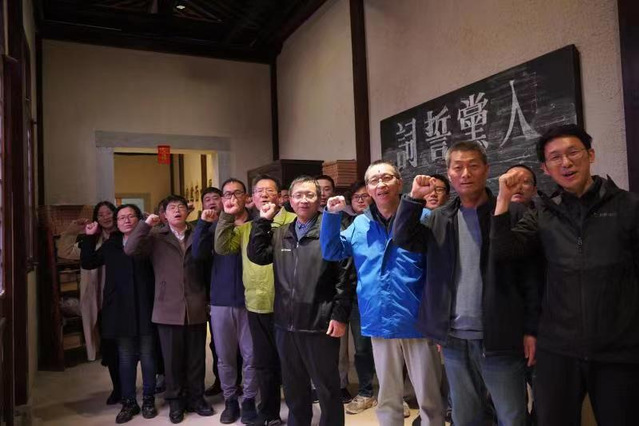 支部党员走进红色李巷,现场参观了红色李巷抗日战争收藏馆、抗日同志纪念馆和抗日战争纪念馆。同志们或驻足聆听,或交流感悟,一个个真实场景、一件件珍贵文物、一张张历史照片,让大家走进了那段艰苦卓绝的峥嵘岁月,也让大家对党组织带领人民开展抗日斗争的伟大历程和光辉业绩有了更为深入的了解。支部党员站在溧水人民抗日战争纪念馆(李氏宗祠)门前,倾听历史回声,感受革命氛围,越发深刻体会到党百年征程的波澜壮阔,体会到革命先烈筚路蓝缕奠基立业的无畏牺牲与奉献。在丘中心党支部王栓宏书记和计算数学系党支部闫亮书记的带领下,参加活动的全体党员面对鲜红的党旗,庄严举起右手,重温入党誓词,铭记初心使命。