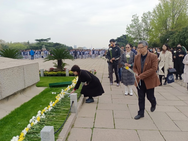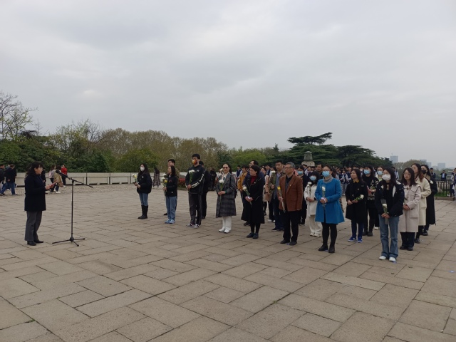 下午,与会全体人员来到南京雨花台烈士陵园开展现场主题教育活动。在庄严肃穆的雨花台烈士纪念馆,大家在讲解员的带领与讲解下,通过光电、影像、图片、实物资料等,深刻感受烈士先烈的丰功伟绩和崇高精神。进一步了解历史、增加党性、不忘初心、砥砺前行。随后,全体人员来到雨花台烈士纪念碑下举行凭吊仪式,仪式由学院党委副书记钟辉主持,全体人员庄严地向烈士敬献花圈并沉痛默哀,学院党委书记吴映红和硕士生第一党支部书记张淑婷同学分别讲话。吴书记指出,通过此次活动,我们要更加深入地了解中国革命和抗日战争的历史,传承革命先辈的优良传统和精神,更好地履行我们作为共产党员的职责。要不断加强和改进基层党建,建强党支部,激发基层活力、凝聚强大的人才向心力和战斗力。张淑婷同学表态,抚今追昔,我们更以一颗感恩的心祭奠烈士,革命先烈们表现出的坚定共产主义理想和信念,穿越时空,激励后人,英雄烈士的英勇事迹永远是我们心中的一块丰碑,从先烈的身上,每一位党员同志都将汲取无穷的精神和力量。
