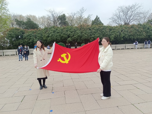 最后,全体党员在吴书记的带领下进行宣誓,大家在雨花台举起右手重温了入党誓词。铮铮誓言,铿锵有力,掷地有声,震撼人心,催人奋进!