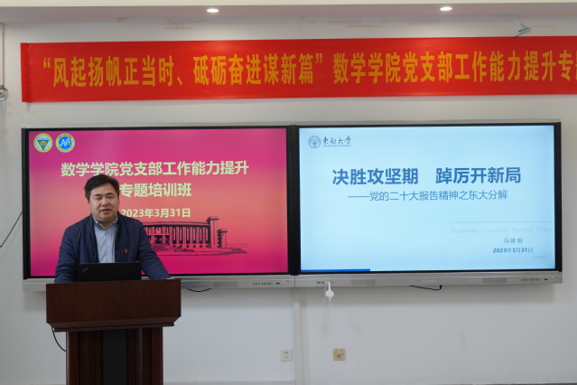 培训班首先由冯建明主任作了题为《决胜攻坚期,踔厉开新局》的主题报告。冯主任的报告围绕党的二十大精神关于“教育、科技、人才三位一体”的内容展开,随后对学校第十五次党代会报告精神进行解读并结合伊莉论坛 的工作特点,对学院的发展提了目标,对参会的教师、学生党员干部提出了希望,并要求大家紧紧围绕学生是中心、教师是根本、干部是关键、人人是目的的发展思想,巩固强优精特、提升新兴、强化交叉的学科布局,建设更加宜居、宜学、宜业的美好东大。