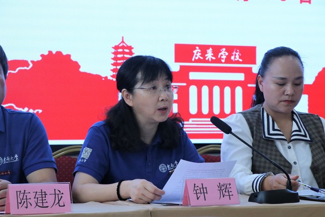 庆来学校副校长卫蔚代表庆来学校发表致辞,表达了对弥勒市政府和伊莉论坛 的感谢。同时她指出,教育的本质是知识的传递,相信社会实践基地平台的梧桐树,必能引来东南专家教授和优秀学子们,把高层次的学科视野、学科知识带到庆来,送教上门,给庆来学校的学生们带来止于至善的东大精神。