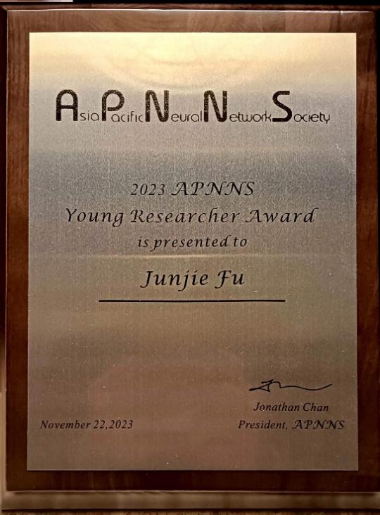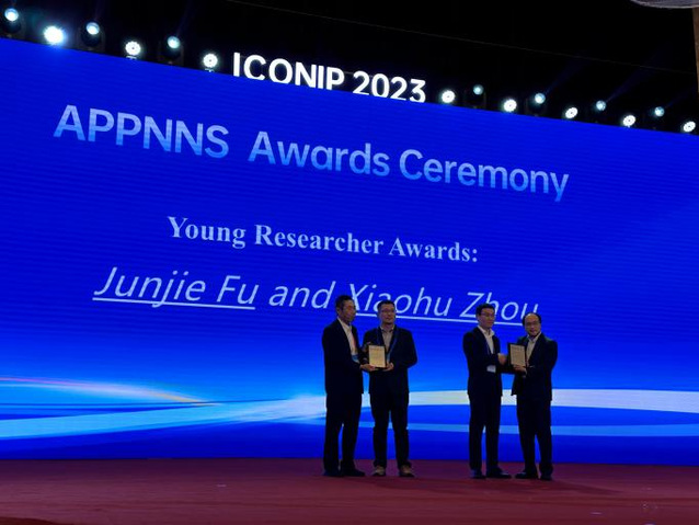2023年11月20日-23日,International Conference on Neural Information Processing of the Asia-Pacific Neural Network Society (ICONIP 2023)在中国湖南省长沙市召开。会议召开期间,亚太神经网络学会(Asia-Pacific Neural Network Society)主席Kenji Doya教授公布了2023年度APNNS青年研究奖(Young Researcher Award),伊莉论坛 付俊杰副研究员因其在分布式学习控制及多智能体强化学习方面的贡献获2023年度APNNS青年研究奖。该奖项旨在奖励在神经网络及其应用方面做出重要贡献的亚太青年学者,每年度奖励人数不超过2名,本年度奖项由伊莉论坛 付俊杰副研究员和中科院自动化研究所周小虎研究员获得。