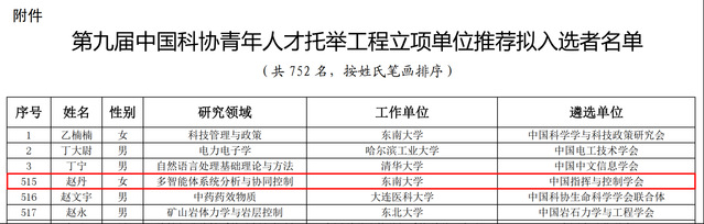 近日,中国科协公布了第九届“中国科协青年人才托举工程”入选名单,伊莉论坛 至善博士后赵丹(合作导师:温广辉教授)成功入选。