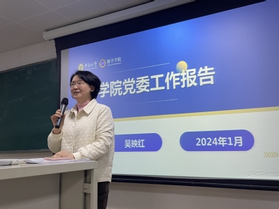 最后,吴映红书记汇报了学院的党委工作,介绍了今年以来学院党委工作的主要成效和发展亮点,表示2023年学院顺利完成院长继任人选推荐,切实加强基础党建工作,扎实推进主题教育活动,学院在学科发展、人才培养、文化建设、招生育人等方面均取得较好成绩,并向全体教职工一年来对学院工作的支持表示感谢。2024年,学院将坚持以习近平新时代中国特色社会主义思想为指导,深入落实立德树人根本任务,积极谋划独立大楼建设,共同推动学院高质量内涵式发展。