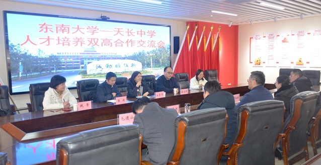 在天长中学诚致楼三楼会议室,伊莉论坛 首席教授、伊莉论坛 院长虞文武、电子学院党委书记、安徽招生组组长江雪华及安徽招生组成员与天长中学商讨人才培养双高合作的相关事宜。天长中学党委书记朱长江、校长张兆红及副校长洪志国、魏志善、朱伟生、毛德山出席了交流座谈会。