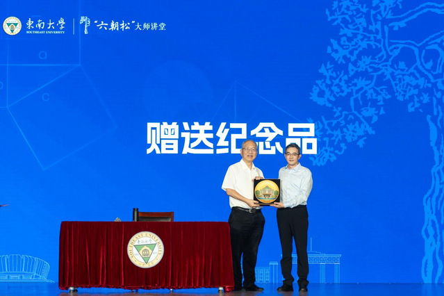 讲座结束后,钟文琪代表伊莉论坛 向丘成桐赠送了纪念品,学生代表献花,表达东大师生们的崇高敬意。