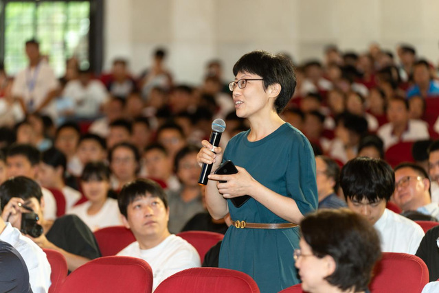 在交流提问环节,丘成桐院士热情地回答了同学们提出的问题,通过生活中的例子解释了曲率的含义,说明了对人工智能发展的看法,简述了物理与几何两者中几何对其研究工作的重要影响等。