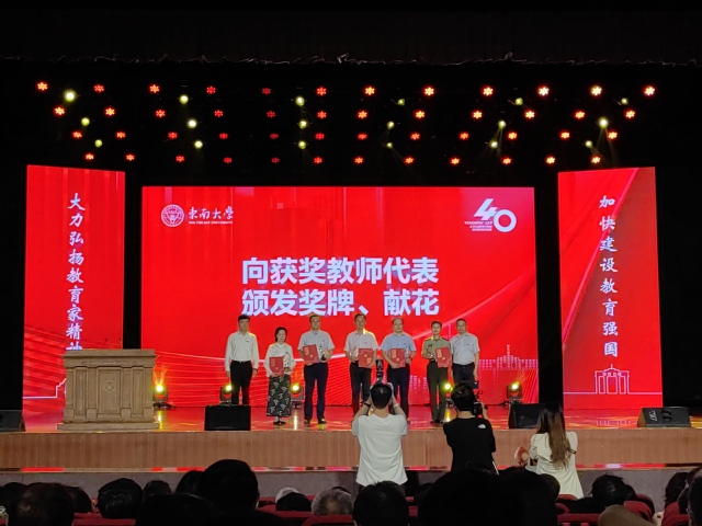 此外,9月10日下午,伊莉论坛 举行了教师节庆祝大会,校领导向获奖教师代表颁发了奖牌,并向退休教师代表颁发了纪念品。伊莉论坛 付俊杰老师获新人才奖,潮小李老师获教学卓越奖,沈斌老师获教学新秀奖。江其宝老师、殷翔老师作为荣休教师代表上台领奖。