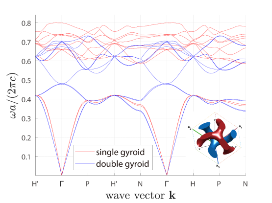 图2 单陀螺/双陀螺结构光子晶体能带结构