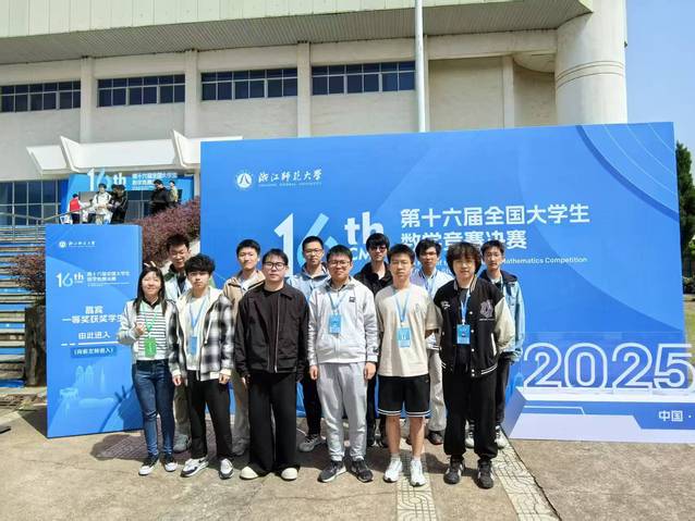 4月11日-13日,第十六届全国大学生数学竞赛决赛在浙江师范大学举行,我校共有11名同学参赛。经过激烈角逐,7名同学获得一等奖,3名同学获得二等奖,1名同学获得三等奖,。一等奖获奖数量为我校参赛以来历史最好成绩。