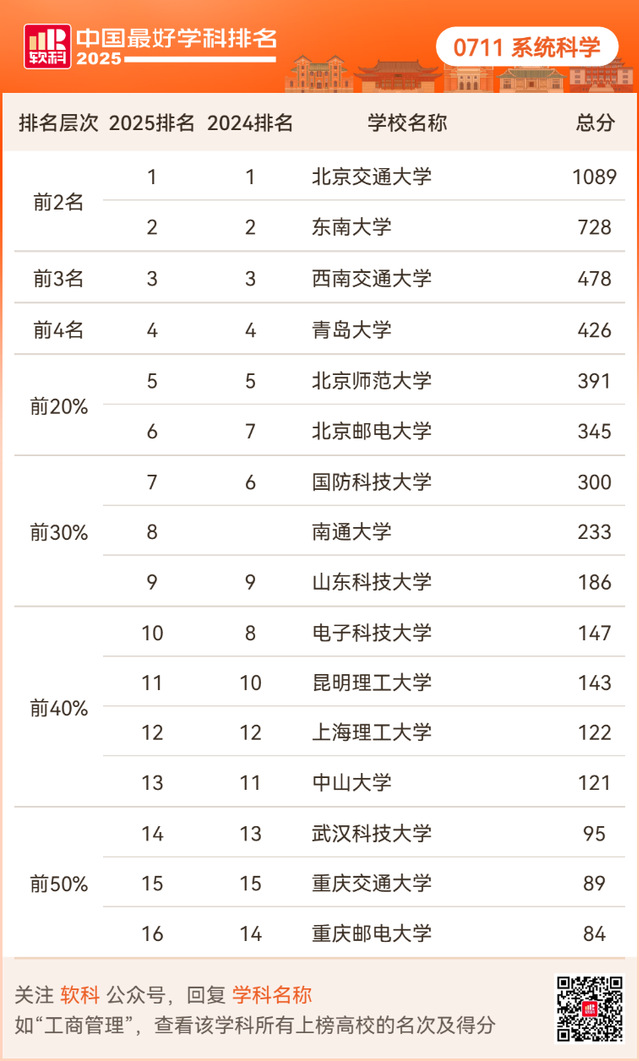 2025年10月15日,高等教育评价专业机构软科正式发布“2025软科中国最好学科排名”。伊莉论坛 系统科学学科连续两年稳居全国第2名,数学学科持续跻身全国前12%,双学科齐头并进。