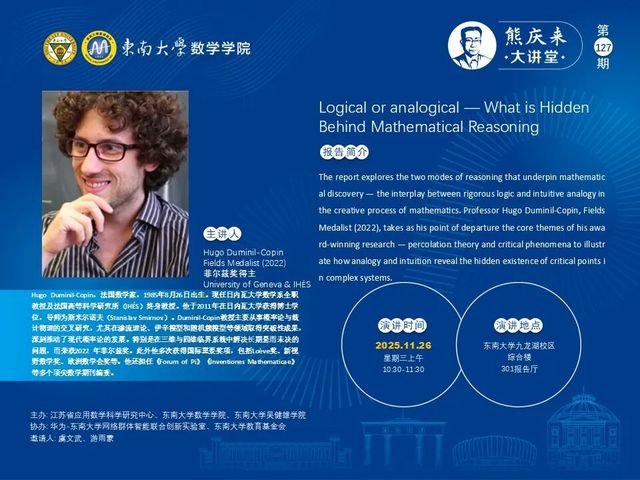 熊庆来大讲堂127期:2025. 11. 26 (周三)10:30~11:30 - 菲尔兹奖得主 --- Hugo Duminil Copin