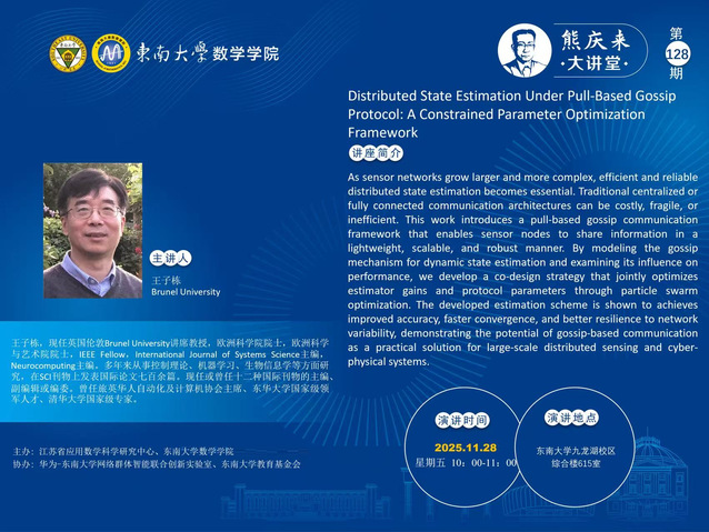 熊庆来大讲堂128期:2025. 11. 28 (周五)-Brunel University - 王子栋