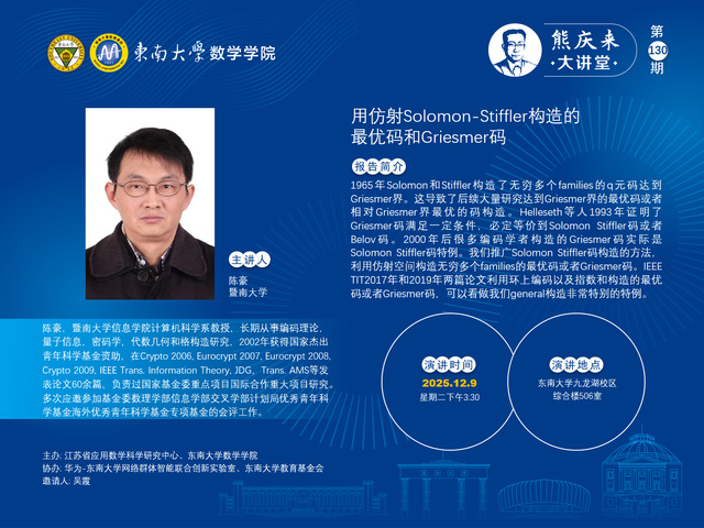 熊庆来大讲堂130期:2025. 12. 09 (周二)- 暨南大学 - 陈豪
