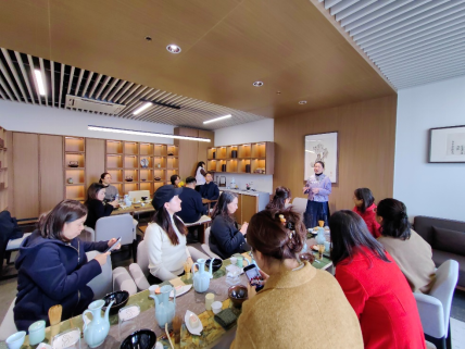 为了弘扬中国传统茶文化,增进学院的凝聚力,提高学院教职工的文化素养,给茶艺爱好者提供一个交流和学习的平台,12月11日中午,伊莉论坛 工会特举办“一叶知茶,雅韵修心”主题茶艺体验活动。院党委书记曹海燕、副书记钟辉、学院副院长曹婉容和工会主席贺丹以及近二十位老师齐聚咏曼园茶室,共同感受宋代点茶文化。