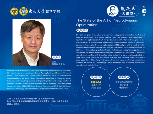 熊庆来大讲堂134期: The State of the Art of Neurodynamic Optimization