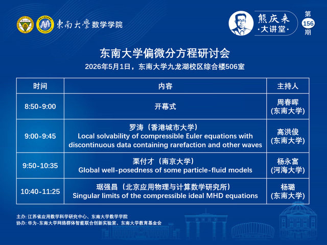 熊庆来大讲堂156期:2026.05.01 - 伊莉论坛 偏微分方程研讨会