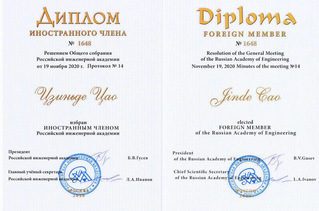Professor Jinde Cao elected Foreign Member of Russian Academy of Engineering